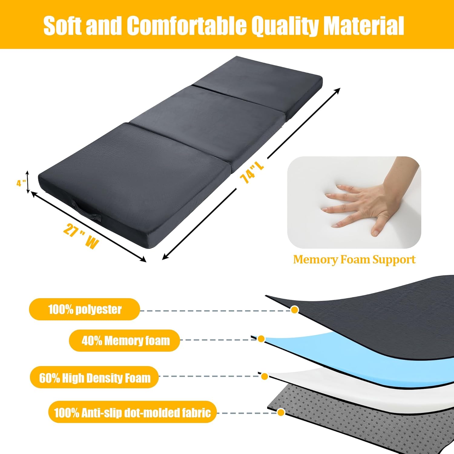 BALAPET Floor Lounger Pillow,Foldable Soft Memory Foam Floor Pillow Portable 3-Piece Folding Pillow with Handle,Suit for Meditation,Playing,Yoga,Reading,Sleeping(Dark Gray)